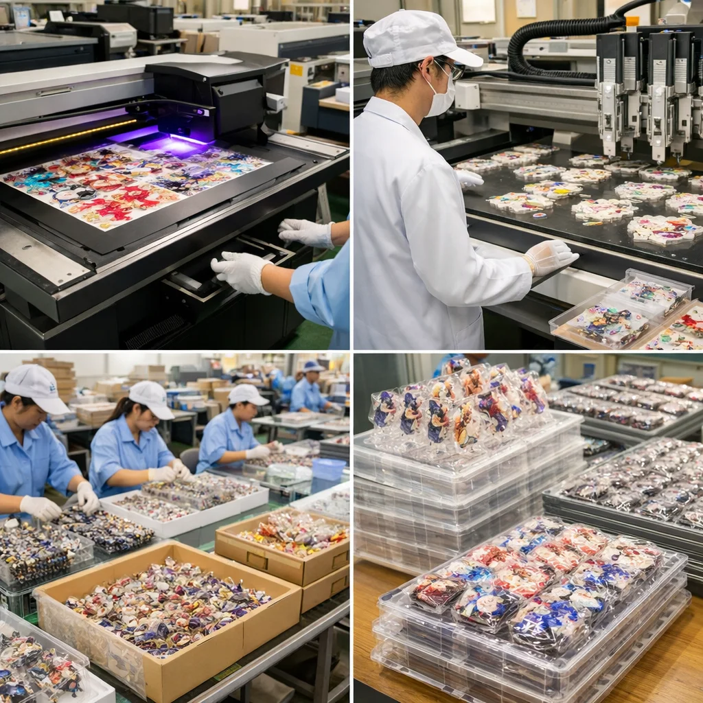 イベント向けと販促向けのアクリルグッズ制作は、それぞれの目的によって異なる特性を持っています。特に、納期や単価、検品、梱包、個装、台紙、JANコードなどの重視項目が異なります。この違いを理解することは、アクリルグッズを量産する際の工場選びにも役立ちます。