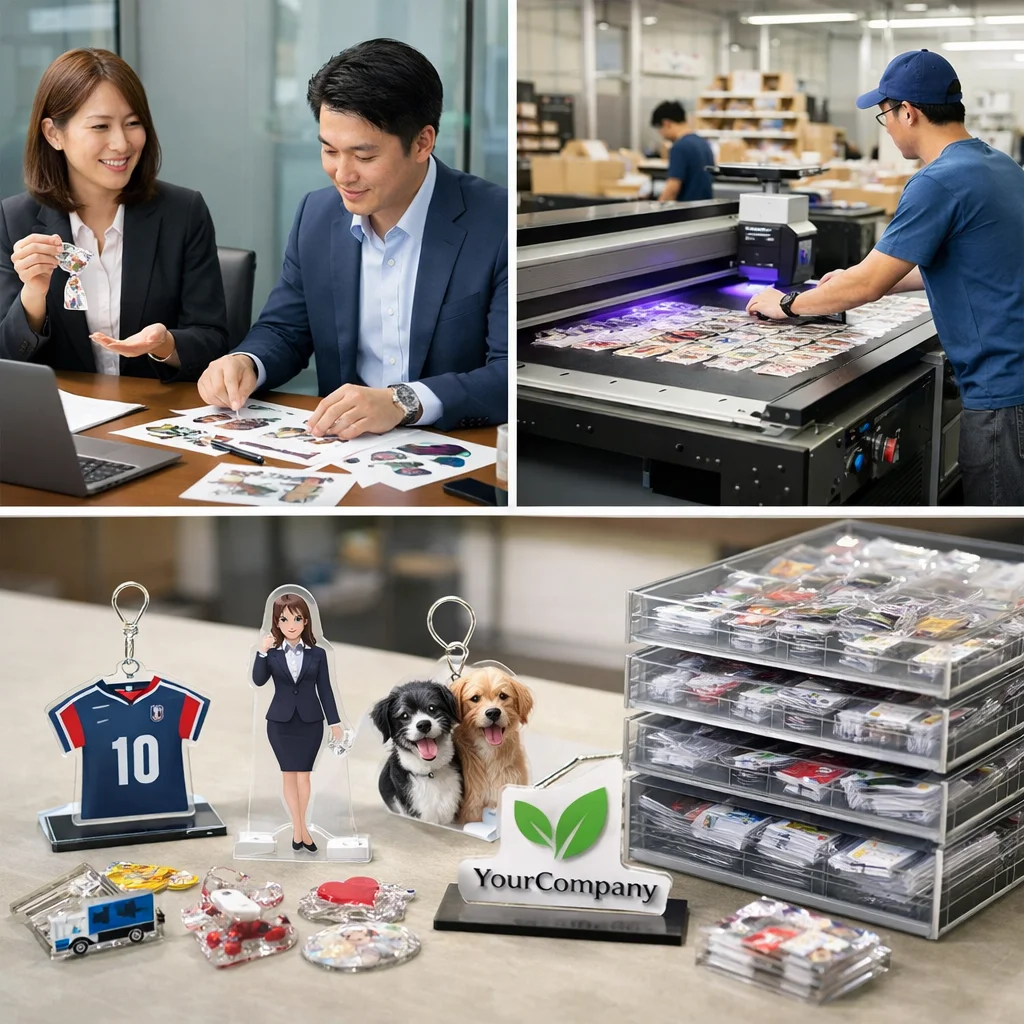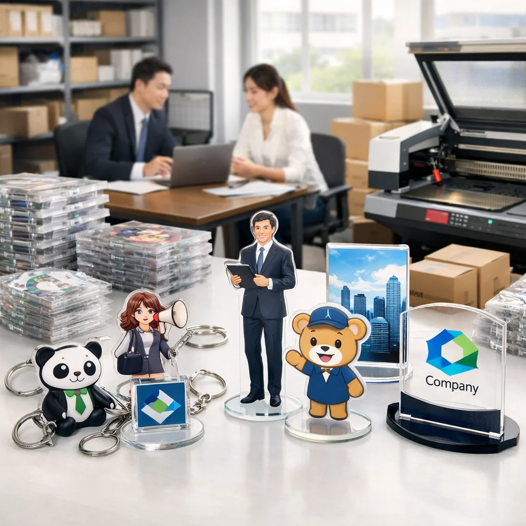 アクリルグッズは、その透明感と耐久性から、企業のブランディングや販促活動において非常に有効なツールです。しかし、企業向けにアクリルグッズを制作する際、適切な業者の選定が成功の鍵となります。本記事では、アクリルグッズの企業向け制作における業者選びのポイントと、失敗しないためのコツを解説します。