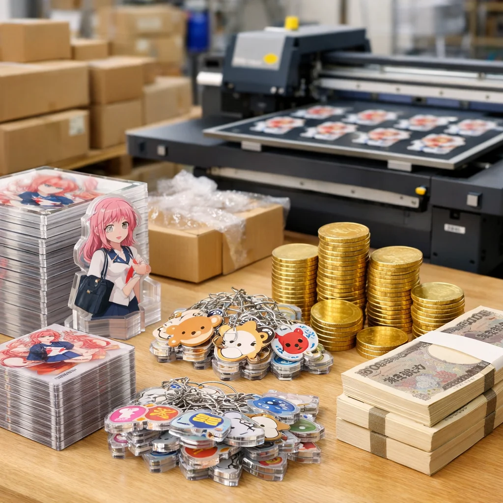 アクリルグッズの大ロット価格は、仕様、加工、付属、検品、梱包など多くの要因によって変動します。特に、白版や厚み、カットの複雑さが重要で、適切な選択がコストを最適化します。