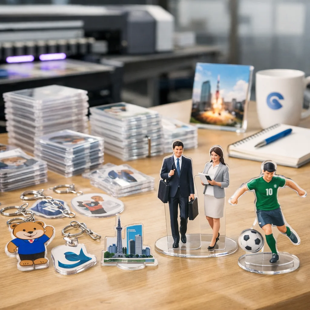 アクリルグッズは、その透明感とデザイン性から、法人向けノベルティとして人気があります。特に、アクリルノベルティは軽量で加工が容易なため、制作コストを抑えつつ高品質な商品を提供できます。大手企業がアクリルノベルティを活用する際、以下のポイントが重要となります。