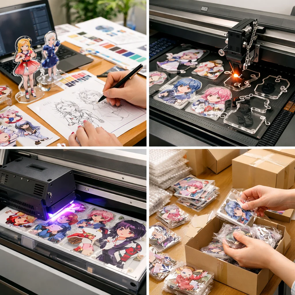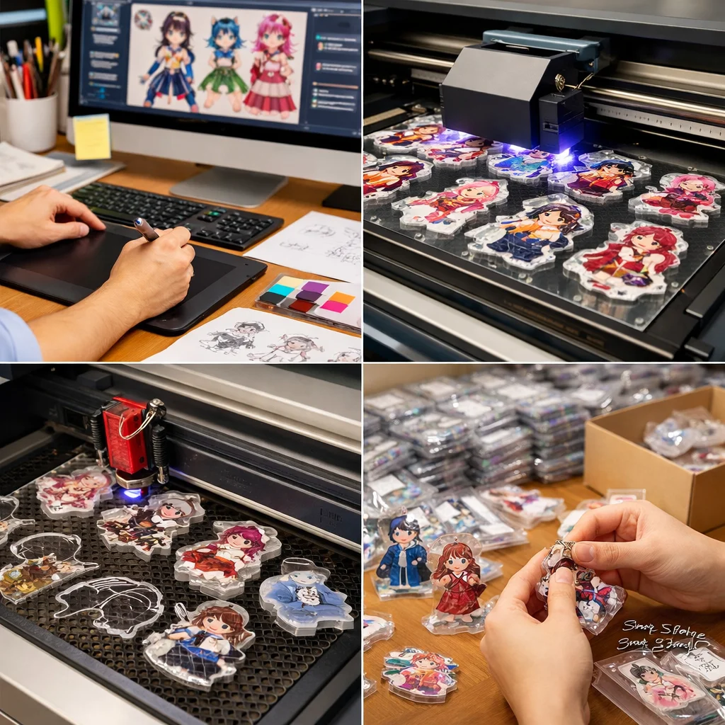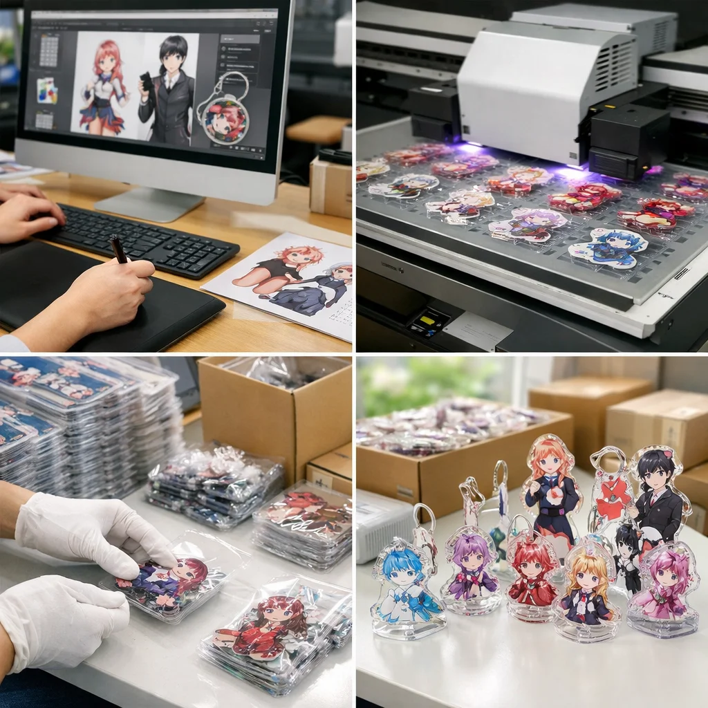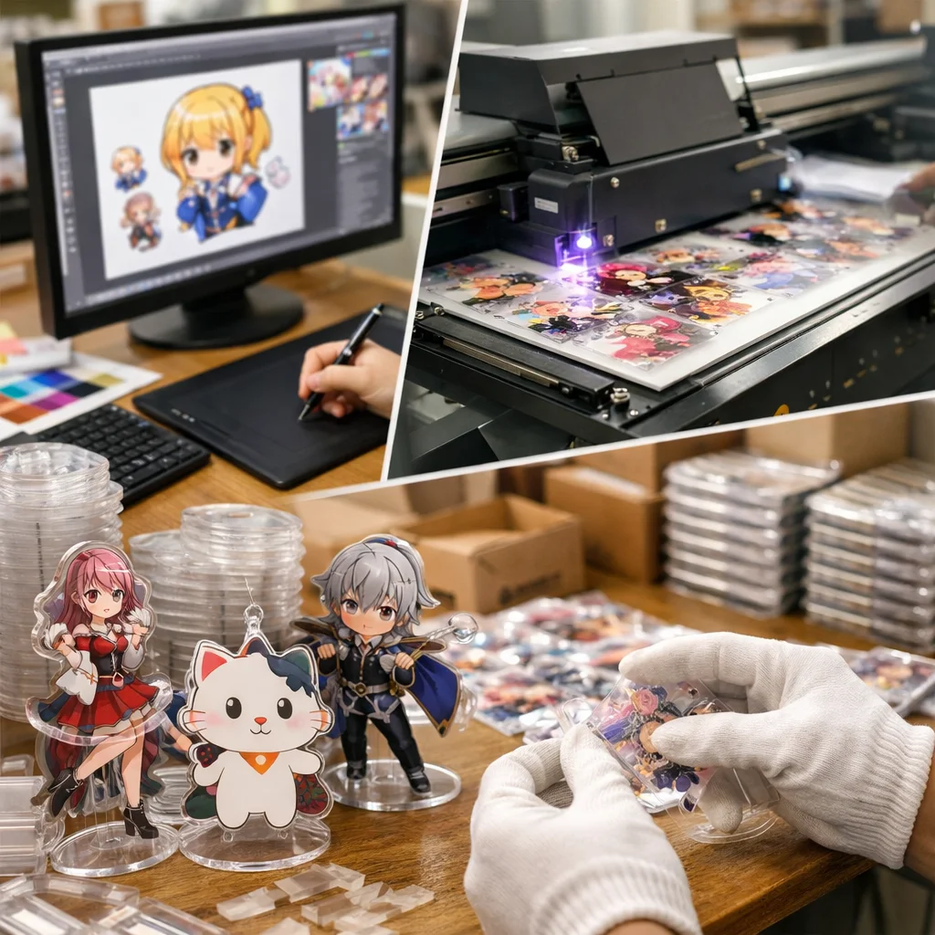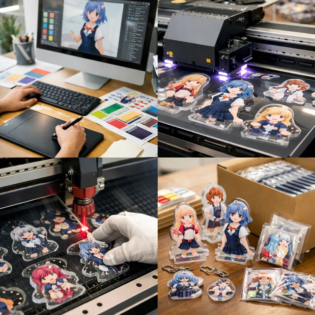 アクリルグッズ販売用制作は、企画から販売までの一連の流れを理解することで、よりスムーズに進めることができます。以下に、アクリルグッズ販売用制作における主要なステップを詳しく説明します。