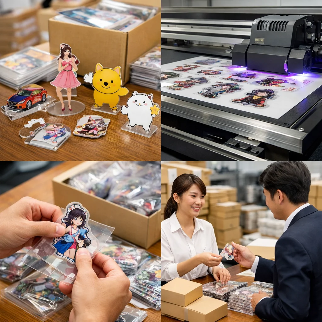 アクリルグッズの販売用制作には、標準化や入稿テンプレ、外注先との関係構築、原価低減、ブランド一貫性、SNS運用の型化、法務リテラシーが重要です。