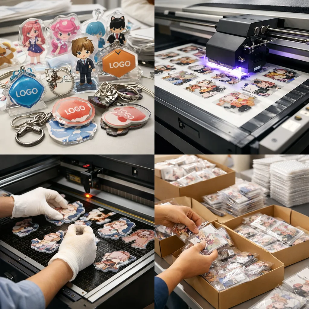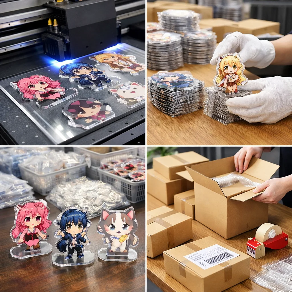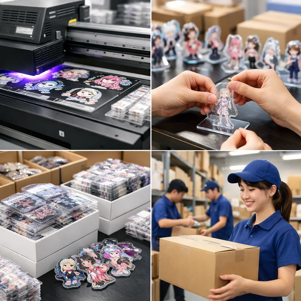 – 確定した仕様に基づいてアクリルグッズの製造を行います。この過程で、品質管理が重要になります。