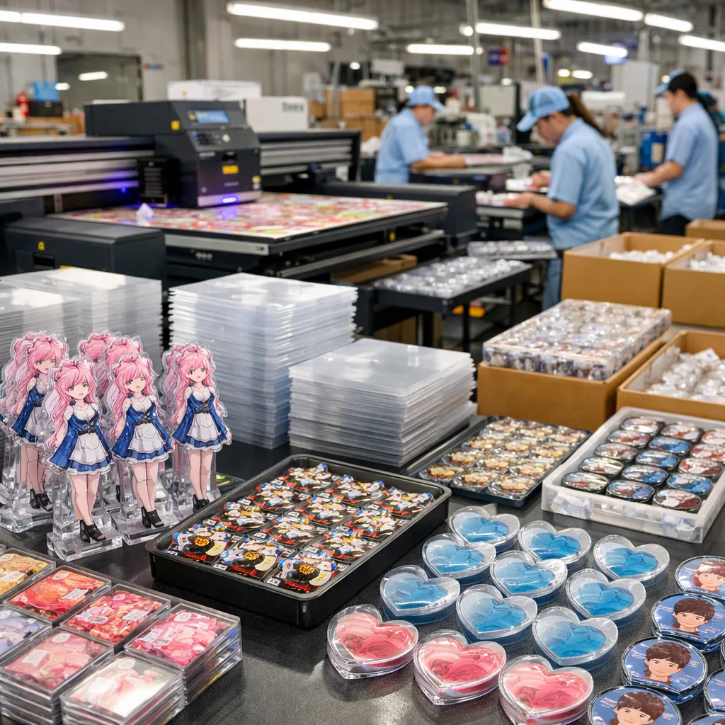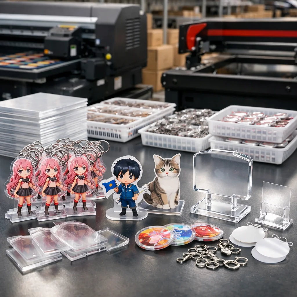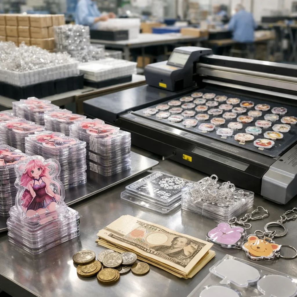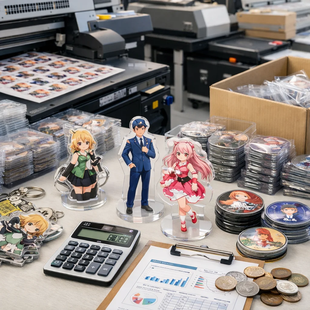アクリルグッズの価格は、サイズ、厚み、印刷方式等多くの要素によって決まります。これらの理解により、量産時のコストを効率的に管理できるでしょう。