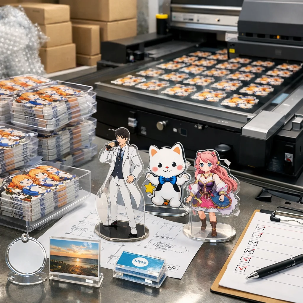 アクリルグッズを大ロットで注文する際は、発注前に仕様や著作権を確認、入稿時にはデータの正確さや色校正が重要です。製造中の進捗確認や納品後の検品基準も大切です。