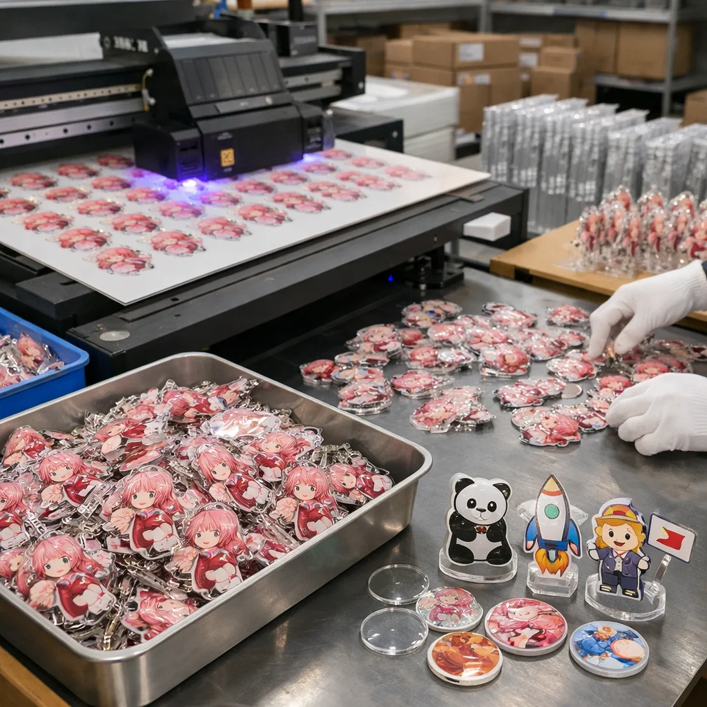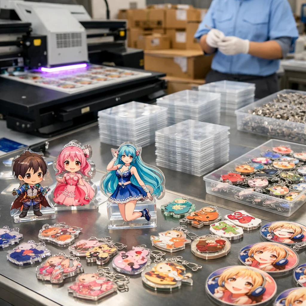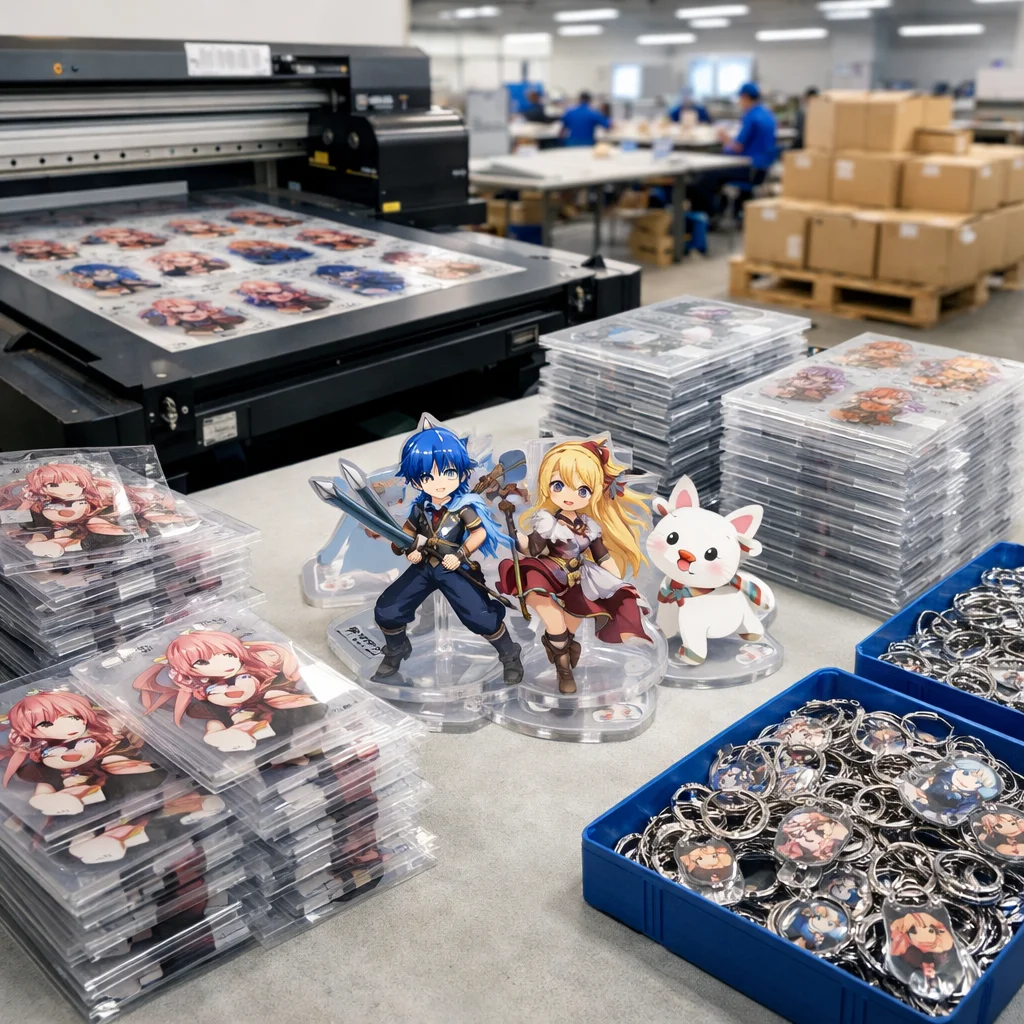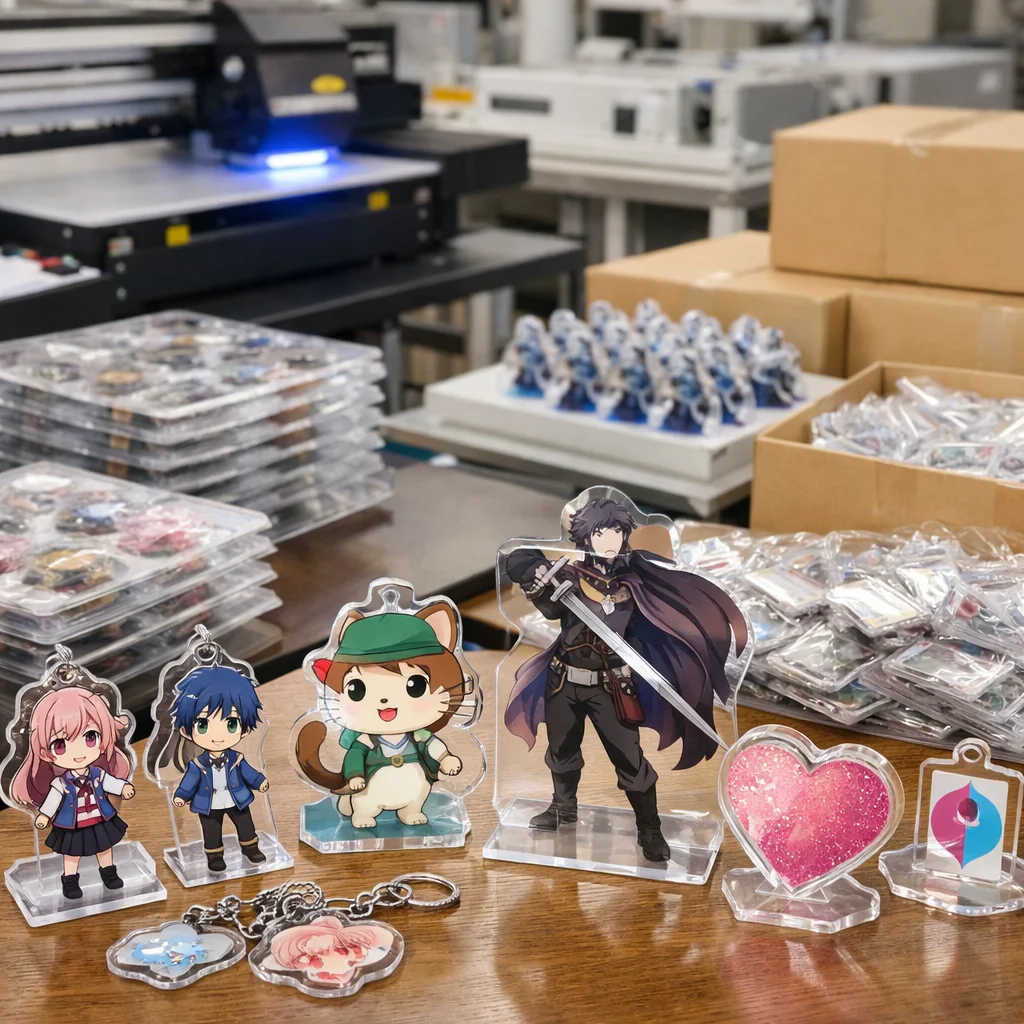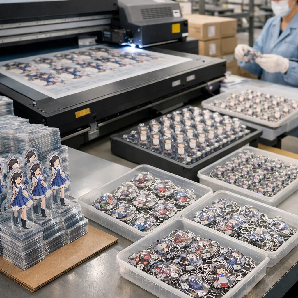 アクリルグッズを量産する際、国外からの部品調達では品質管理が難しくなることがあります。しっかりした検証が必要です。