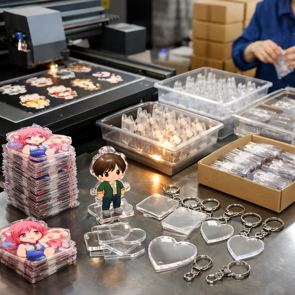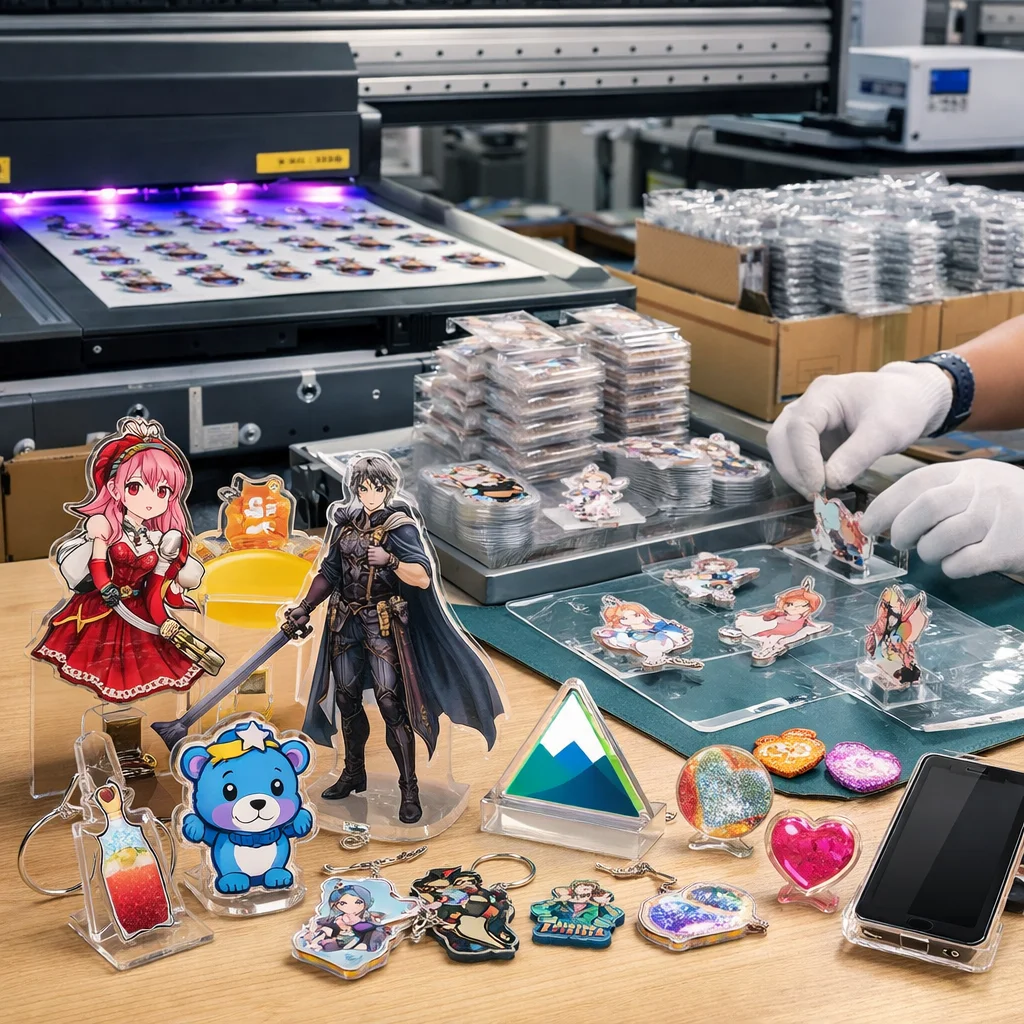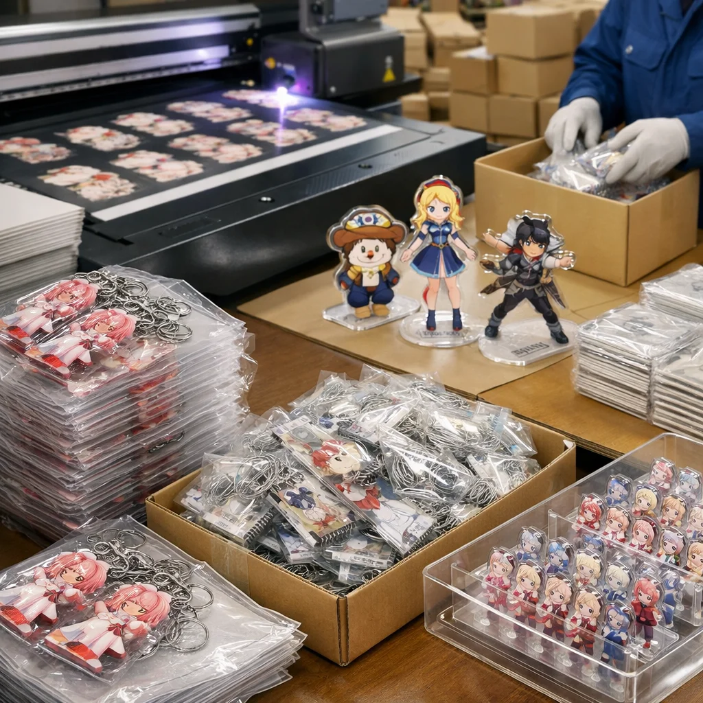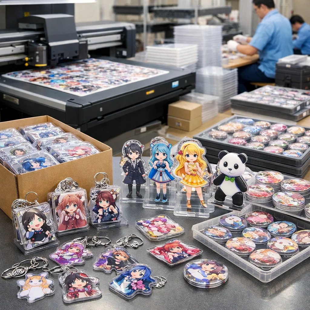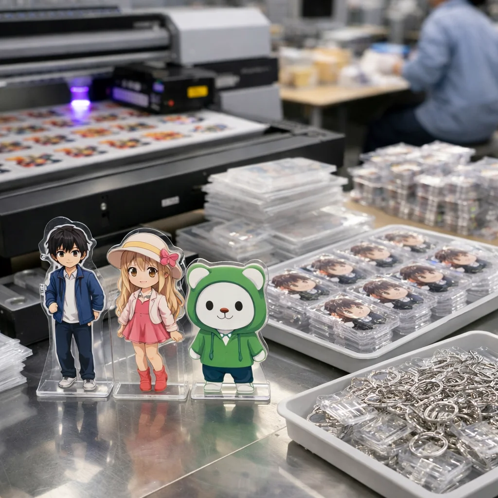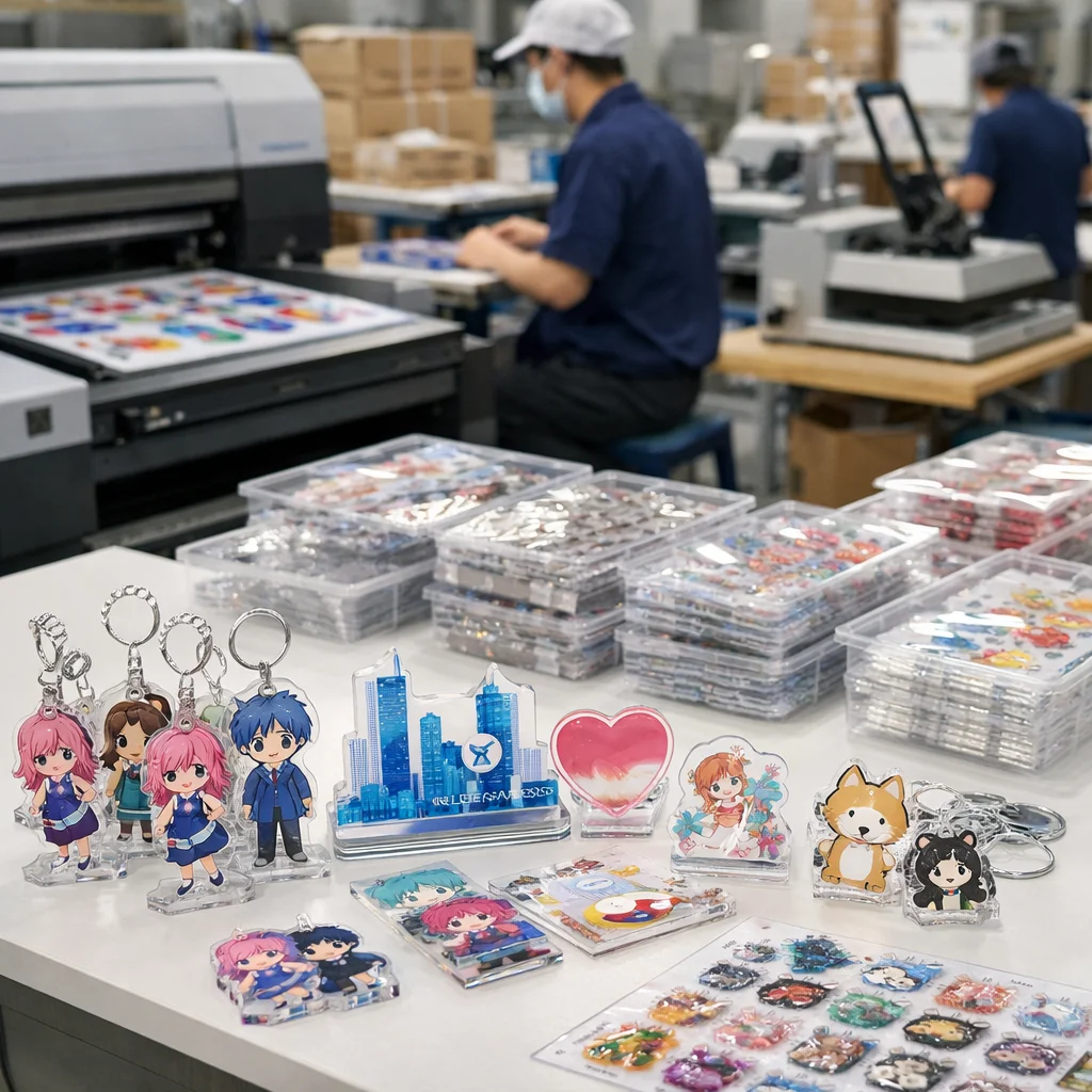 アクリルグッズを量産する際、国外からの部品調達では品質管理が難しくなることがあります。しっかりした検証が必要です。