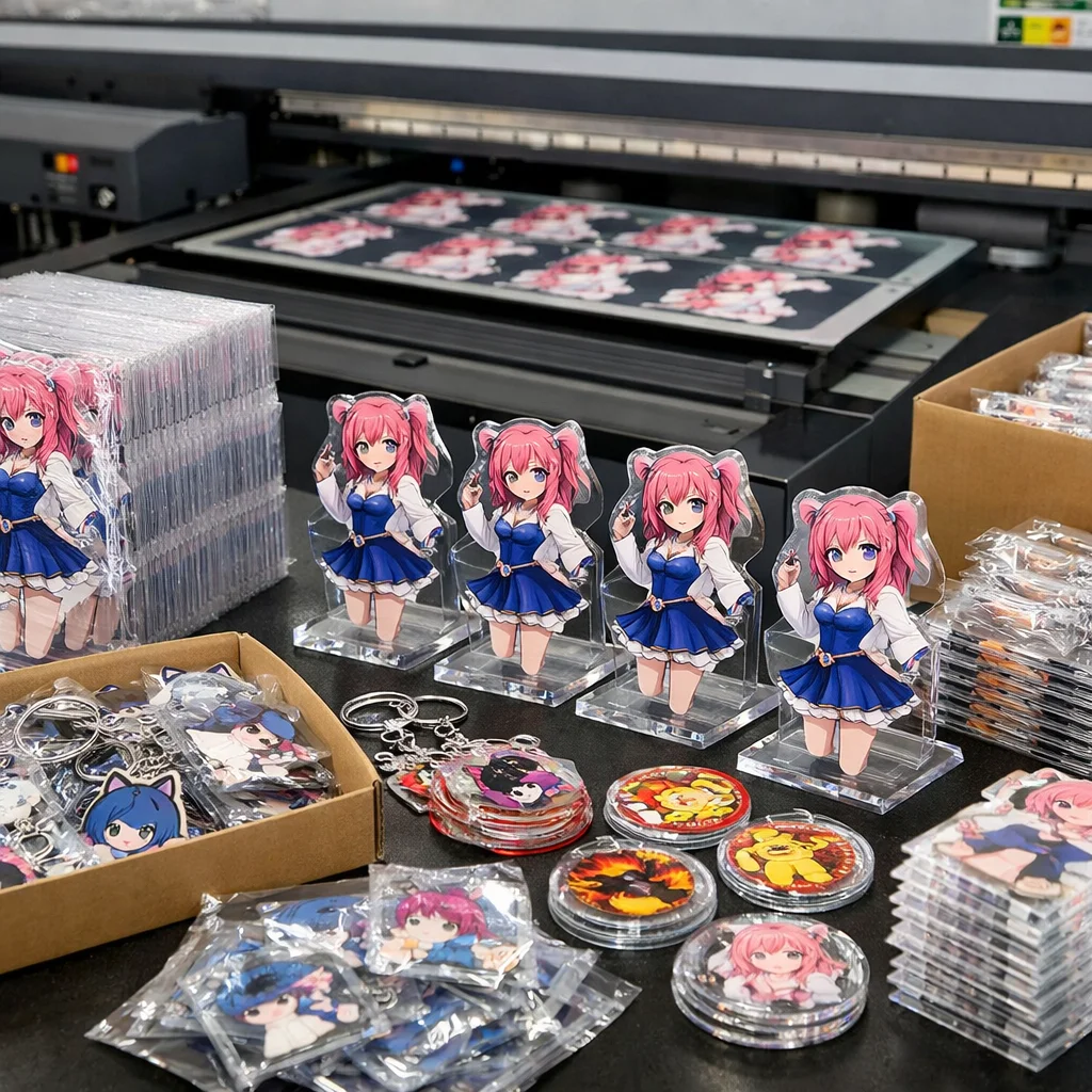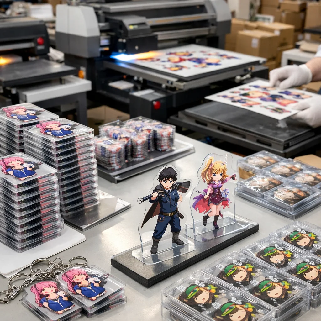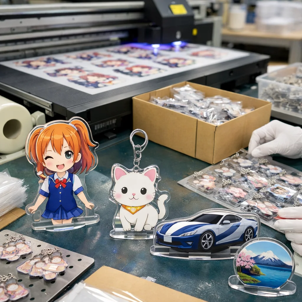 - 量産:校正が完了した後、アクリルグッズの量産に入ります。