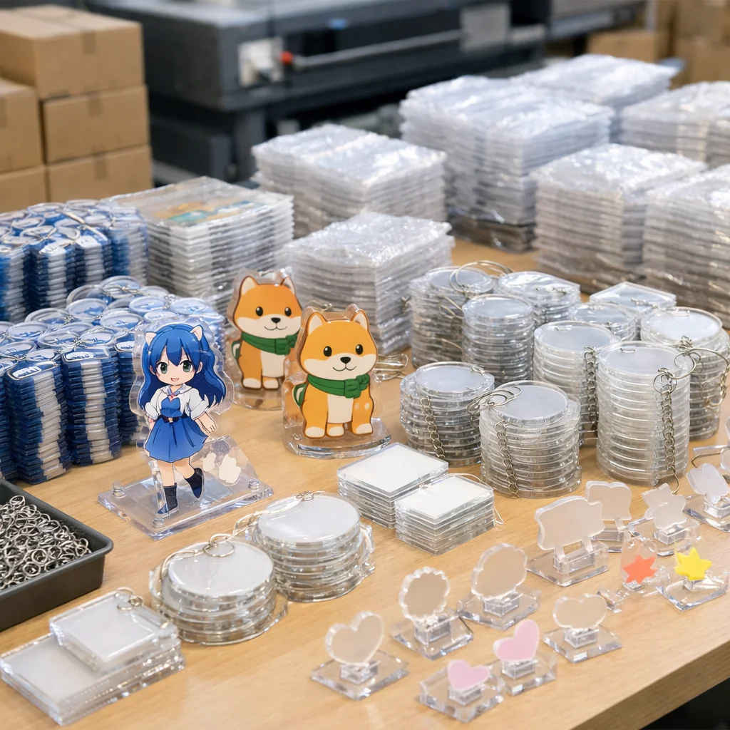 アクリルグッズには多くの要素がコストに影響を与えます。ここでは、一般的なコスト要素を分解して、どのように単価が変わるのかを解説します。