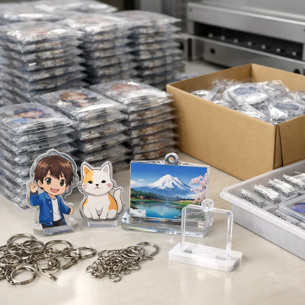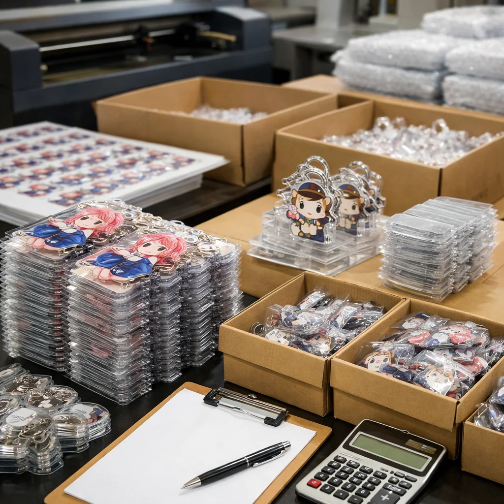 アクリルグッズのコスト要素には、材料、印刷方式、カット、検品などがあり、特に1000個の大量生産時には各項目が単価に影響します。相場と目安を把握することが重要です。