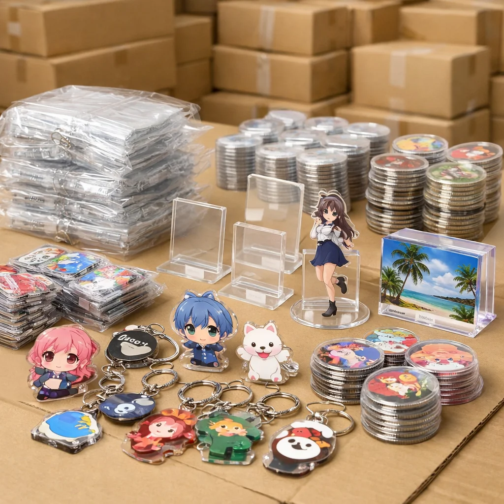 アクリルグッズは、透明感や発色の良さから多くの人々に愛されているアイテムです。特に、アクリルキーホルダーアクリルスタンド、およびアクリルバッジなどの代表的な製品は、様々なシーンで利用されています。これらのアイテムは、ファンイベントやコンサートグッズなどでも定番として知られており、その人気は衰えることがありません。ここでは、アクリルグッズの素材特性と、なぜグッズ化に向いているのかについて詳しく解説します。