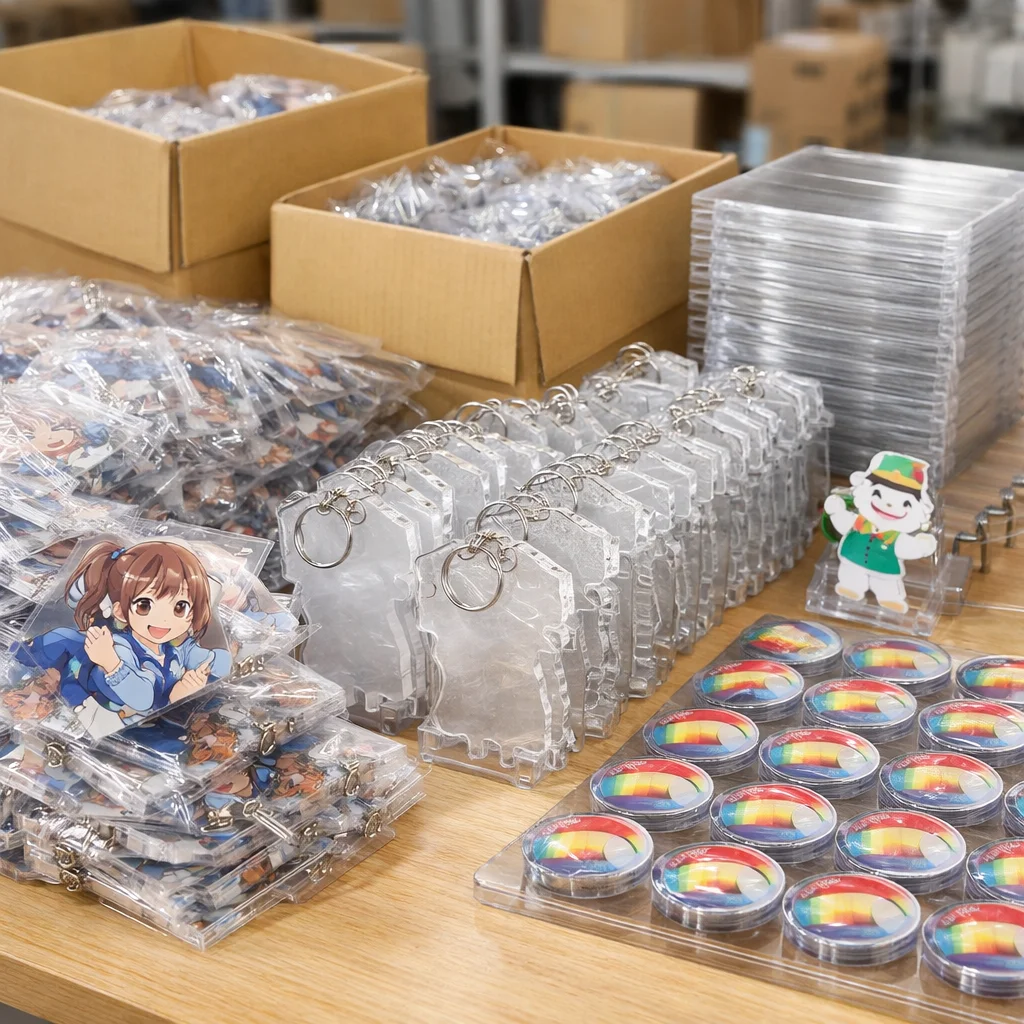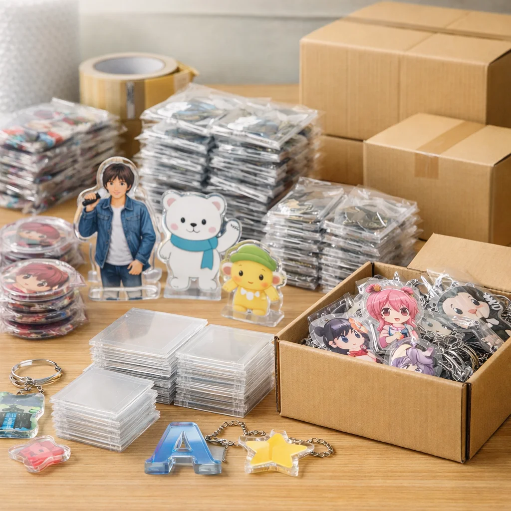 500個のアクリルグッズを取り扱う際は、配布・販売・社内利用・イベント運用に応じた保管、検品、梱包、納品形態を計画することが重要です。チェックリストに基づいて傷や温度管理を行い、コストを抑えつつ品質を維持することで、ビジネスの成功につながります。