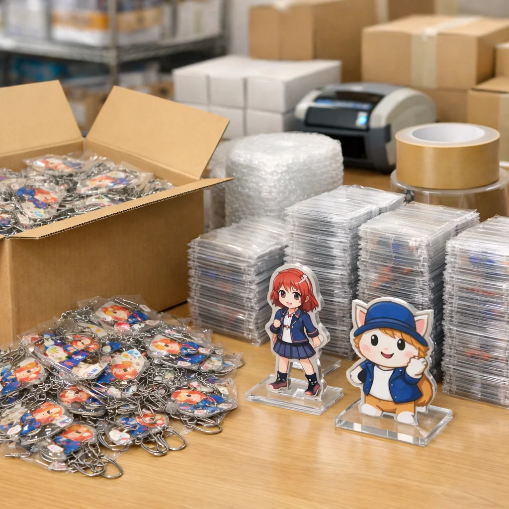 – 保護・検品・個包装の削減: これらを削減することは短期的にはコストを下げますが、品質低下やクレームの増加を招く可能性があります。特にアクリルグッズは、傷や破損が起こりやすいため、厳密な検品や適切な個包装は必須といえるでしょう。