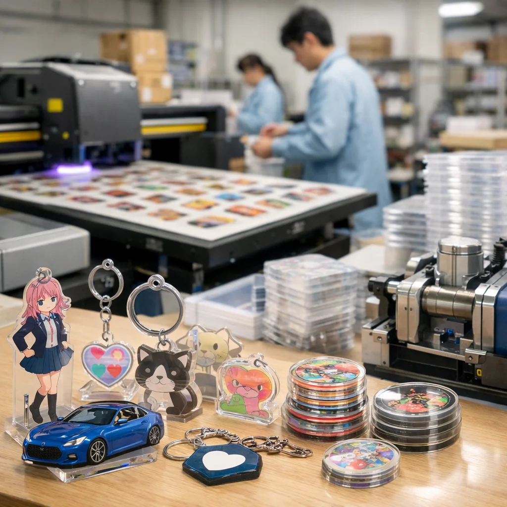 アクリルグッズは近年、多様な用途での需要が高まっており、特に同人、アニメ・ゲームの公式関連、企業ノベルティ、イベント物販など、さまざまな市場セグメントで愛されています。これらのターゲット市場に応じたアクリルグッズの仕様を整理し、そのニーズと求める仕様、さらには工場に対して求める設備や検品について詳しく解説します。